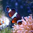 Amfiprion okoniowy - Amphiprion ocellaris. Ryby te należy trzymać w małych grupach, najlepiej w zbiorniku z ukwiałami, ponieważ żyją z nimi w symbiozie. W jednym dużym ukwiale np. z rodzaju Heteractis sp., Entacmaea sp. żyje przeważnie kilka osobników, z których dominuje po jednym osobniku każdej płci, aczkolwiek większa jest zawsze samica, a kiedy ona ginie jej miejsce zajmuje dominujący samiec, który przekształca się w płodną samicę. Jego miejsce zostaje zajęte przez kolejnego w hierarchii samczyka. Samica składa w pobliżu ukwiału jednorazowo około 1000 jaj. Jednakże w akwariach rzadko dochodzi do wylęgu młodych, ponieważ ikra łatwo zostaje zainfekowana pasożytującymi grzybami pleśniowymi. Znakomicie nadaje się do hodowli przez początkujących akwarystów, jeśli w akwarium jest obecny ukwiał. Ma śmiały sposób żerowania. W stosunku do innych ryb wykazuje czasem terytorialny charakter, za wyjątkiem garbikowatych.